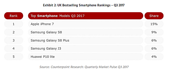 Apple tops UK smartphone market in Q3, Samsung close second