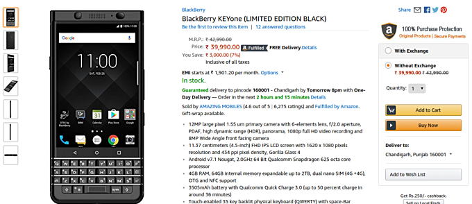 The BlackBerry KEYone with 4GB/64GB memory configuration and dressed in all black officially arrived in India last week. And now, as scheduled, the device has been made available for purchase through Amazon.