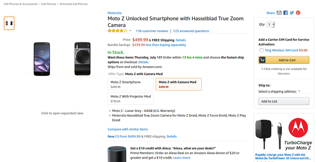 Deal: Bundle including Motorola Moto Z and Hasselblad True Zoom camera mod for $500