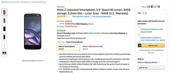 Motorola Moto Z currently going for $400 in US
