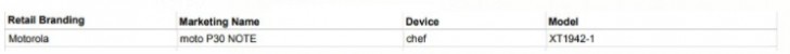 The P30-series started about two weeks ago on Motorola's Chinese website and the P30 has since been officially announced. And according to the new report, the P30 Note is actually the rumored Power One device with model number X51942-1.