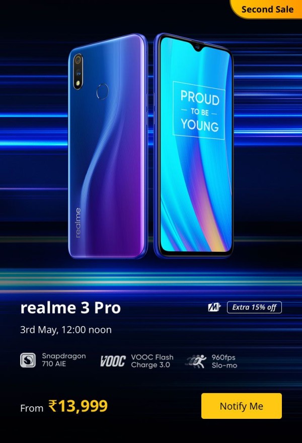 Participants could win 10 Realme 3 Pro units or buy one with a discount from its flash sale at noon on May 3 for INR 13,999.