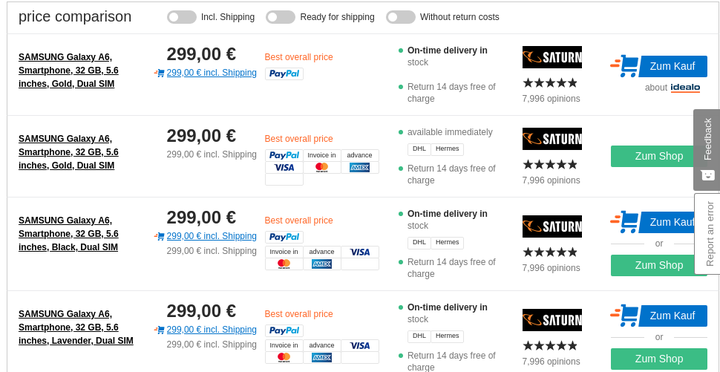 The Samsung Galaxy A6 (2018) and Galaxy A6+ (2018), which debuted earlier this month, are now available for purchase in Europe. Multiple retailers - including Saturn and Media Markt - have the duo in stock, and are offering them for €299 ($350) and €369 ($433), respectively.