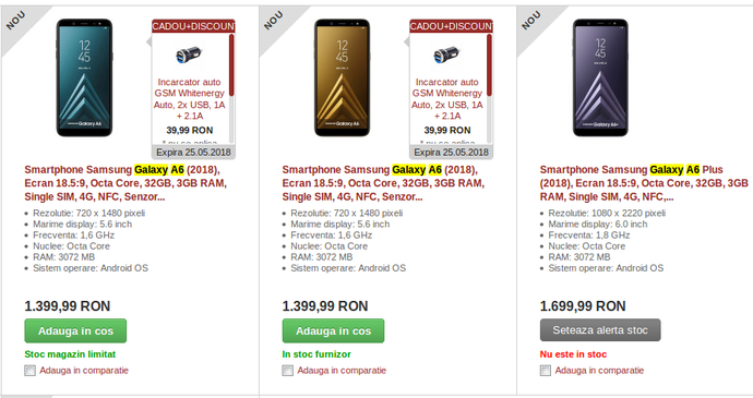 The Galaxy A6 and A6+ (2018) are also available in Romania (the plus variant is not in stock though), where they are priced at RON1,400 and RON1,700. Unsurprisingly that's the exact same price as in Germany and chances are we won't see much fluctuation as the duo makes its way around the EU in the following days. If you feel like snatching yourself a brand new A6, you should follow the two links at the bottom of the article.