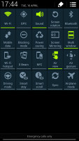 At the top there are five (or eight in landscape mode) toggles that can quickly enable and disable features. There are more than five toggles, of course, you can swipe horizontally to get to the others. Or you can tap the new button that reveals a grid of all the shortcuts, 20 in total. You can rearrange this grid (the top row toggles are always visible). A two finger swipe directly opens the grid of toggles.