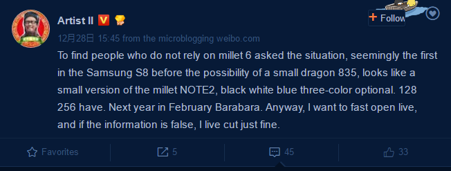 Moving on, the new rumor - which is said to come from a renowned Chinese tipster - also says that the device will be powered by Snapdragon 835 SoC and made official in February 2017, which is thankfully inline with what we've previously heard.