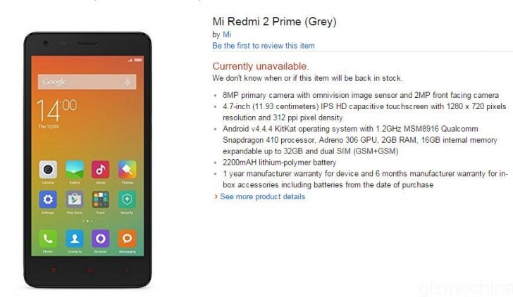It looks like the Redmi 2 Prime will be launched in India soon. That's because it was listed by Amazon India for a while, and through that listing we have information about its specs.